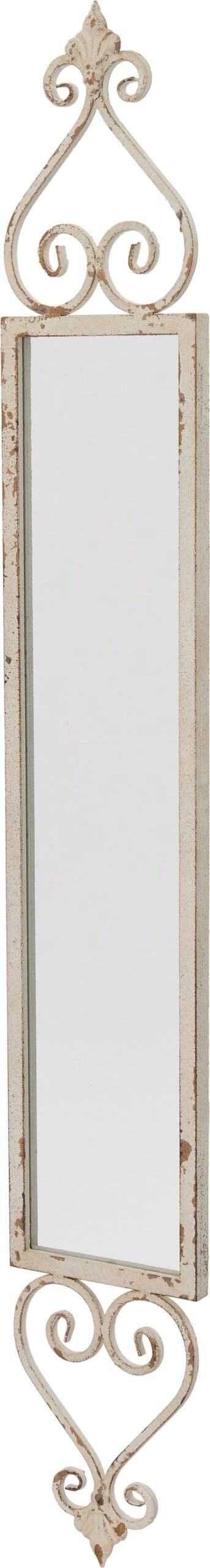 De juiste spiegel kan ontzettend veel doen voor de ambiance in de tuin. Dit rechthoekige exemplaar van Intratuin heeft een wit metalen decoratie aan de boven- en onderkant, waardoor de spiegel fraai oogt. De decoratie ziet er op een positieve manier oud en doorleefd uit. De afmetingen zijn 23 x 3 x 162 cm.