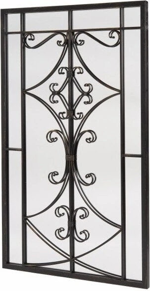 De Intratuin spiegel is een slimme toevoeging voor jouw tuin. Door de weerspiegeling creëer je ruimtelijkheid, waardoor je tuin nog groter lijkt. Of juist meer licht in een donkere hoek. Wanneer je de zwarte wanddecoratie tegen een egale achtergrond hangt krijg je het effect van een raam. Dit wordt extra geaccentueerd door de metalen decoratie. De omlijsting van de spiegel is gemaakt van ijzer en ziet er oud en doorleefd uit. Hierdoor krijgt het veel meer karakter en heeft het een vintage uitstraling. De afmetingen zijn 65 x 2 x 100 cm.