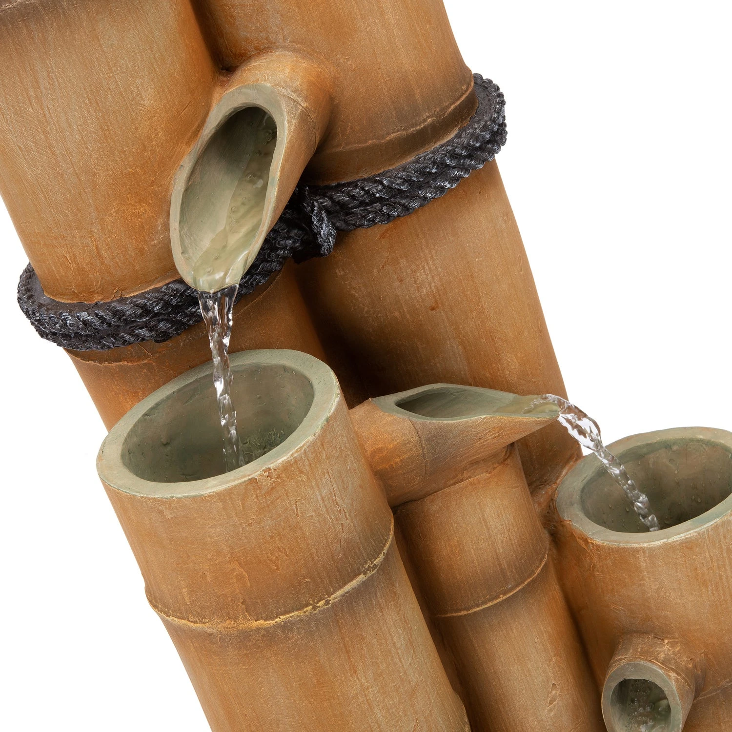 De waterfontein wordt geleverd met een 10 meter kabel en 12 volt transformator. Dit sfeervolle waterornament in de vorm van bamboe heeft de afmetingen 29 x 28 x 87 cm.