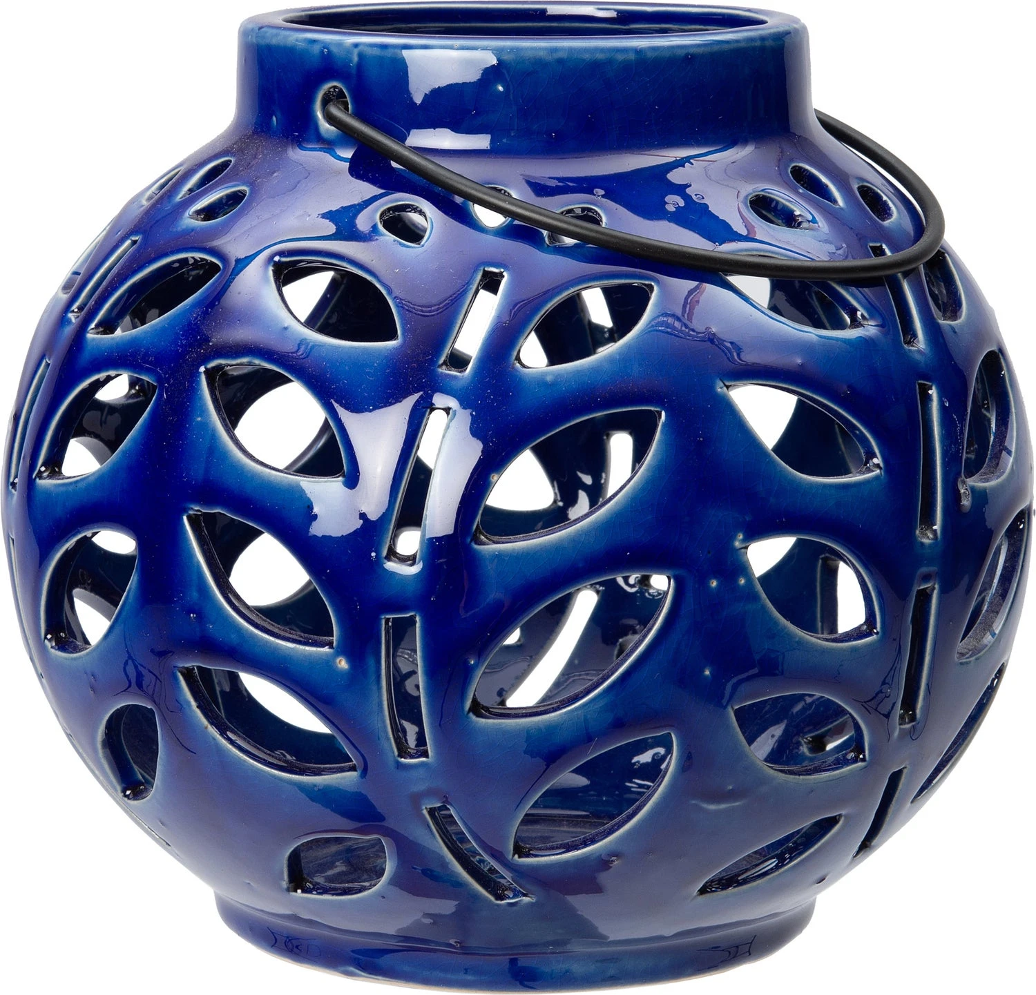 Dit windlicht Leaf van Intratuin geeft kleur aan je balkon, tuin of terras. Door het mooie bladeren patroon kan je het vlammetje goed zien branden en geeft het een leuk effect in het donker. Leaf is verkrijgbaar in meerdere kleuren en afmetingen en is gemaakt van keramiek. De doorsnede van dit blauwe windlicht is 26 cm en de hoogte is 20 cm.