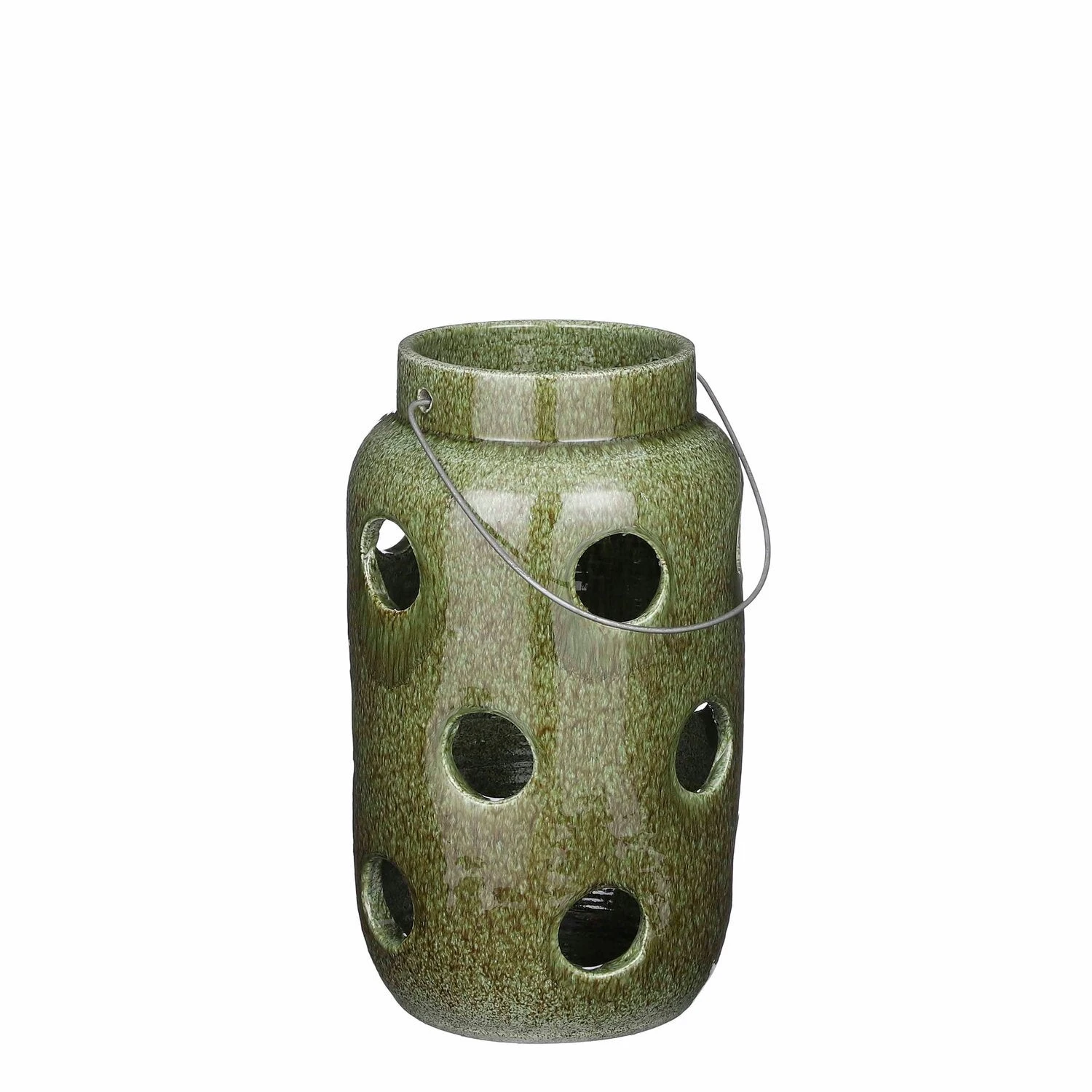 Met wat sfeerverlichting maak je het tijdens een avond in de tuin extra gezellig. Doe bijvoorbeeld een kaarsje in de Arena lantaarn van Mica Decorations. De lantaarn is gemaakt van hoogwaardige terracotta klei uit Portugal en valt op door de mooie, glanzende finish in een groene kleur. Mooi voor op elk terras of balkon! De ronde gaten geven het geheel een speelse uitstraling en zorgen voor een mooie verspreiding van het licht. Daarnaast kun je hem door het hengsel gemakkelijk verplaatsen. De Arena lantaarns zijn verkrijgbaar in verschillende kleuren en maten. Leuk om met elkaar te combineren! Dit groene model is 35 cm hoog en heeft een diameter van 20 cm.