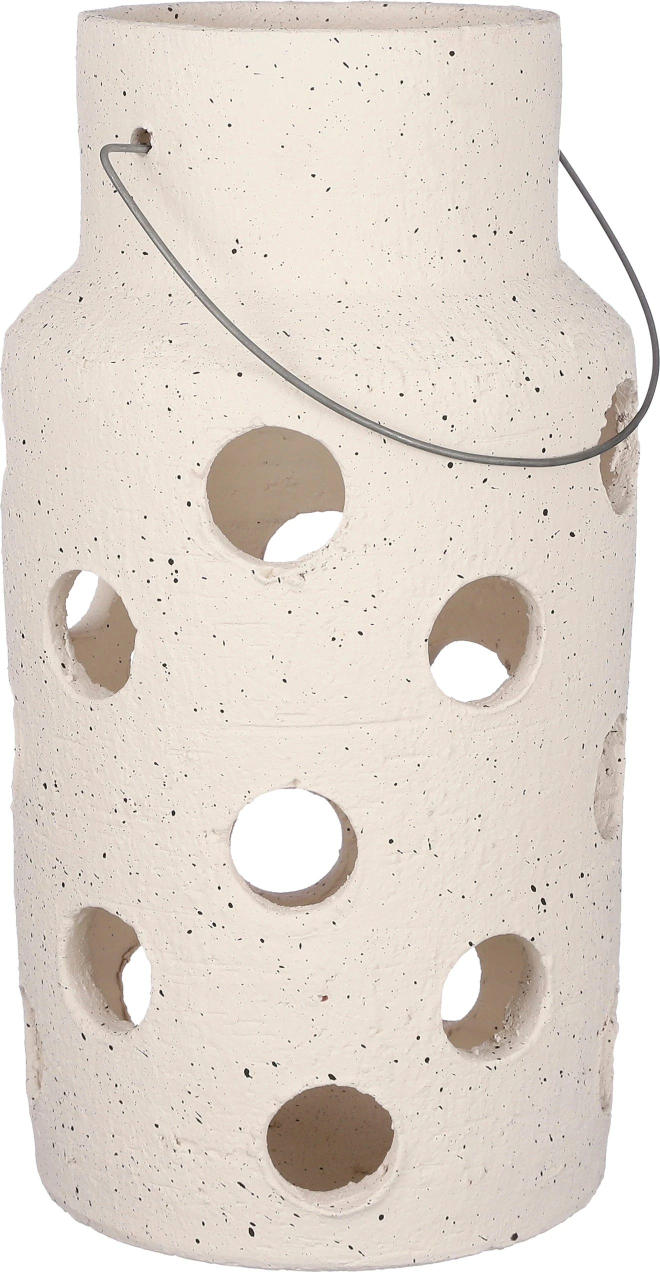 Maak een gezellige avond in de tuin helemaal af met wat extra sfeerverlichting. Steek bijvoorbeeld een kaars aan in de Pietra lantaarn van Mica Decorations. De lantaarn is afkomstig uit Portugal en gemaakt van hoogwaardige terracotta klei. Opvallend is het speelse design met gaten, waardoor het licht ook nog eens extra mooi wordt verspreid. Daarnaast is de lantaarn erg mooi afgewerkt in een beige kleur met natuurlijke, donkere spikkels. Mooi voor op elk balkon of terras! heb jij er al een mooie plek voor gevonden? De Pietra lantaarns zijn verkrijgbaar in verschillende kleuren en maten. Leuk om met elkaar te combineren! Dit antraciete model is 45 cm hoog en heeft een diameter van 23 cm.