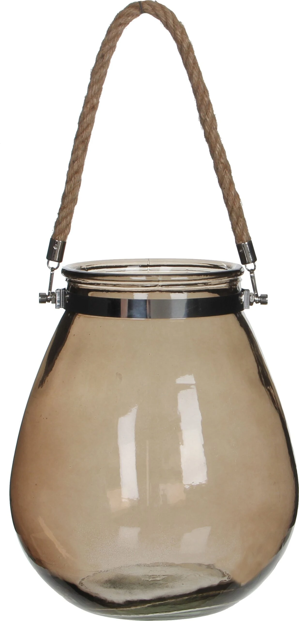 Dit windlicht van Mica Decorations is een musthave op een warme zomeravond! Zet er een kaars in en het warme licht zorgt in no time voor extra gezelligheid. Je kunt hem neerzetten, maar door het handige hengsel kun je hem bijvoorbeeld ook in een boom hangen. Het windlicht heeft bruin glas, waardoor er een extra warme kleur vanaf komt. Met een doorsnede van 24 cm en een hoogte van 28 cm is er in iedere tuin, terras of balkon een plekje voor te vinden.